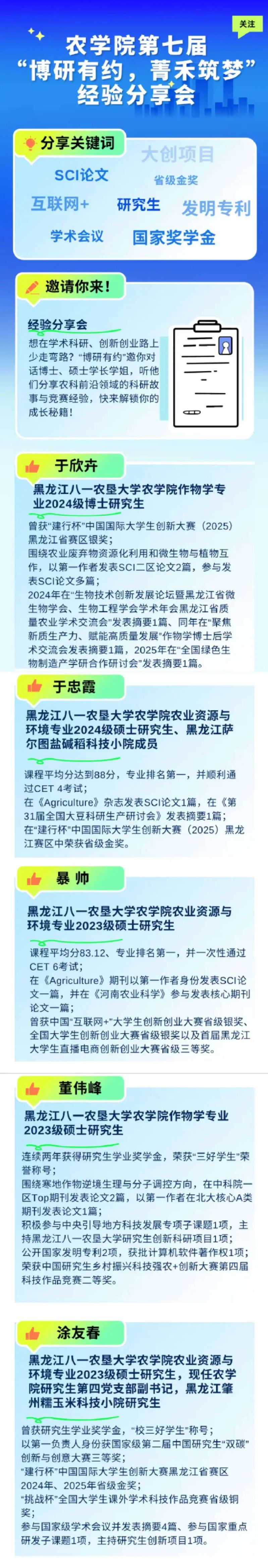未来,农学院将持续搭建优质交流平台,推动学术经验与成长智慧的薪火相传,助力更多同学明晰发展方向,培养兼具扎实科研能力与强烈社会责任感的高素质人才。