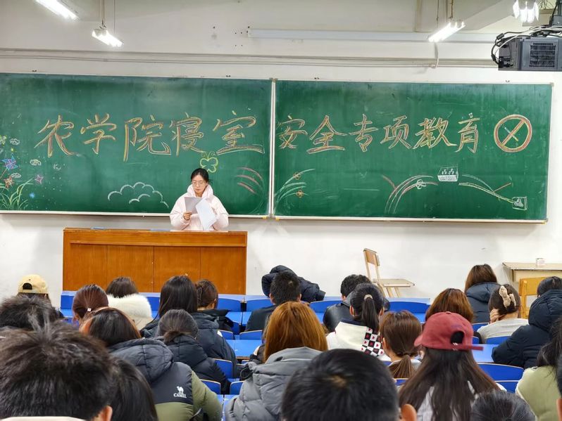 为切实强化学生安全意识,防范寝室用电安全事故发生,11月28日至30日,农学院以“全覆盖、强警示、重落实”为原则,深入教室、寝室一线,连续召开年级大会、寝室安全教育会,结合近期典型案例开展警示教育,推动寝室用电安全从“被动提醒”向“主动防范”转变,为学生成长筑牢安全屏障。