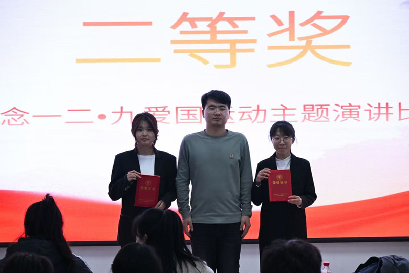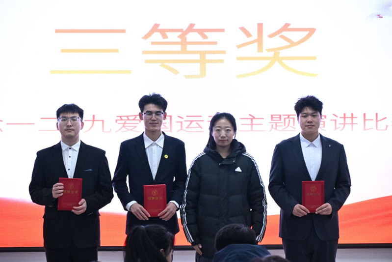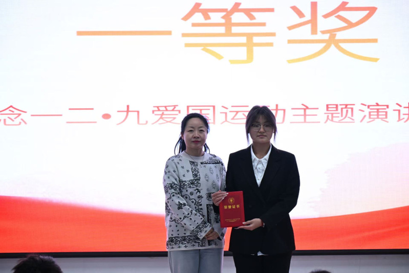 参赛选手依次登台,他们以深情的讲述回溯“一二·九”爱国运动中青年学子不畏强权、救亡图存的历史壮举,也以激昂的陈词展望当代青年在科技创新、乡村振兴、文化传承等广阔天地中的责任与担当。选手们紧密联系自身经历:有人分享在偏远乡村支教时见证的希望与成长,呼吁“将爱国情怀融入日常行动”;有人则援引陆璀等前辈上下求索、奔走呐喊的感人事迹,抒发出“强国有我,重任在肩”的青春信念。声情并茂的演讲,既有娓娓道来的深情,也有铿锵有力的宣言,深深感染了全场观众,一次次引发静默深思,又一次次赢得持久而热烈的掌声,活动中文艺表演环节精彩纷呈,为活动现场注入了蓬勃的艺术活力。最后,经过激烈角逐与评委的认真评议,王婉舒同学荣获一等奖;石丽美、李博两位同学荣获二等奖;陈鑫、孙维、王思为三位同学荣获三等奖;高堉婷、李欣泽、邓化瑞、高鹏宇四位同学荣获优秀奖。