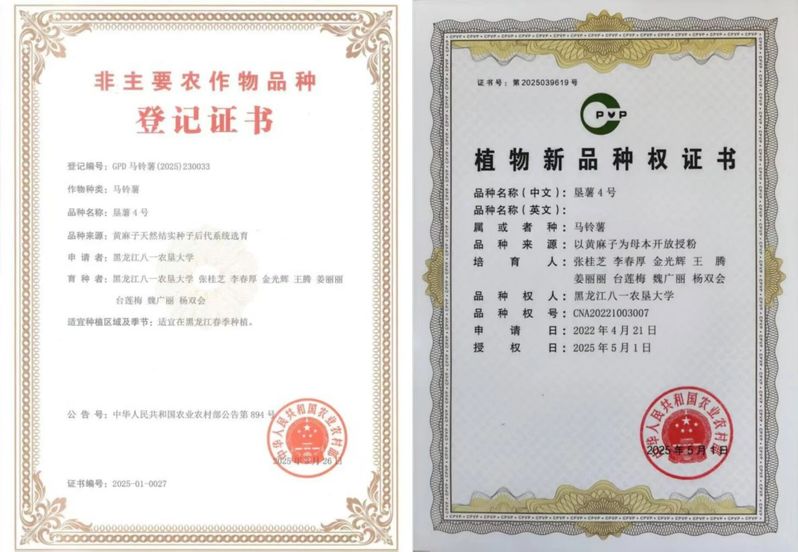 2025年,学院育种研究再结硕果,“垦薯4号”马铃薯新品种成功审定并获得新品种权证书,为寒地马铃薯产业优质高效发展注入新动能。