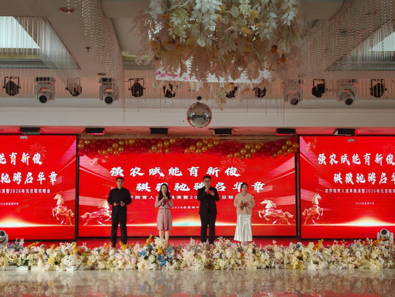 灵蛇摆尾辞旧岁,骏马昂首迎新春。为总结学院2025年质量发展经验措施,展现学院育人成果。12月31日,学院举办“强农赋能育新俊 骐骥奔腾启华章”农学院育人质量展演暨2026年元旦联欢会,农学院全体教职工参加。