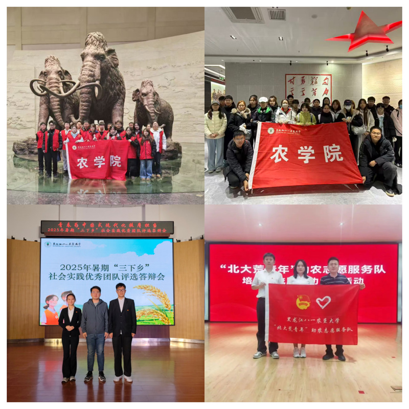 学院深化社会实践成效,以“受教育、长才干、作贡献”为导向,健全全流程管理机制,全年组织培训30余场、组建实践团队450余支,1700余人次师生足迹遍布全国20余省市,实现覆盖范围与参与规模双突破;志愿服务成果丰硕,学院“北大荒青年”助农志愿服务队斩获共青团黑龙江省委主办的北大荒青年助农志愿服务队培训交流暨建功竞赛“特等奖”,获多家媒体报道;“小垦仓-科技赋农兴垦地,志愿助力振乡村”团队获学校首届青年志愿服务大赛银奖;8名团员青年经考核成功对接投身基层锻炼,第四十七届学生会主席赵佳慧成功入选第7届研究生支教团;先后组织20余场,830人次参与省第十九届学生运动会、大庆博物馆、校史馆的志愿服务,彰显农学院青年学子责任担当与青春风采。