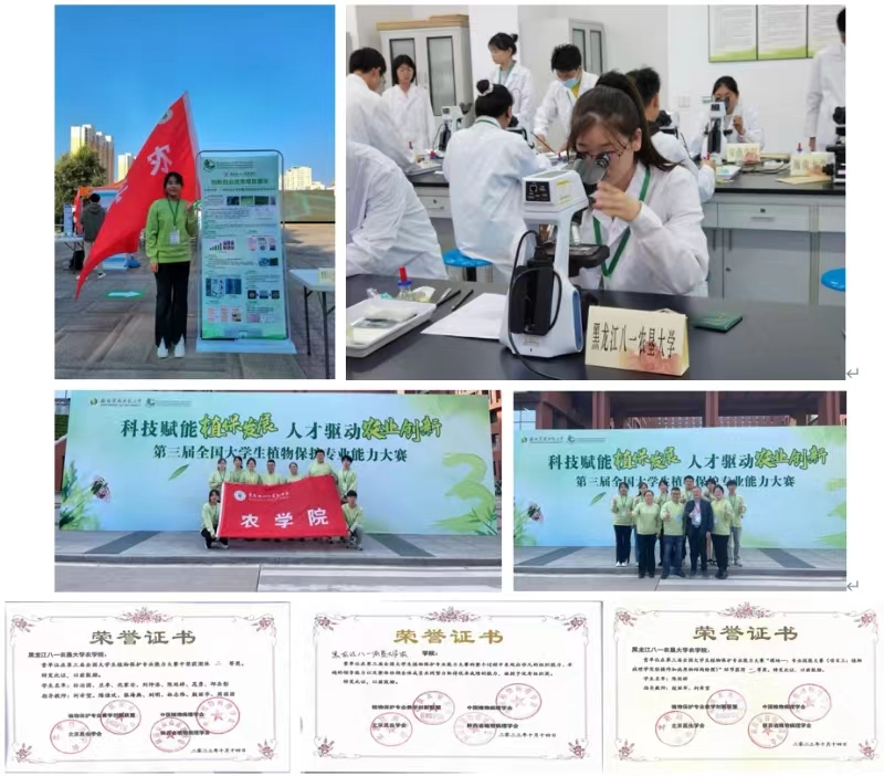 买球赛的app官网植物保护专业孙治国、陈廷婷、兰卓、晁勇、沈家安、刘仲浩等本科生在植物保护学科带头人左豫虎教授,以及学科青年教师柯希望、张海燕、陈佳欢等的带领下参与了此次大赛。买球赛的app官网参赛学生参加了3大模块中7个小项的比赛,包括昆虫微景观展示与现场标本制作项目、植物病虫害识别、植物病理学实验操作和病原物结构绘图、昆虫解剖和结构绘图、创新创业优秀项目展示、本科生学术交流报告等。比赛过程中买球赛的app官网学生表现优异,展现了良好的精神风貌和专业技能,荣获团体二等奖1项,陈廷婷同学在植物病理学实验操作和病原物绘图项目中荣获二等奖1项,买球赛的app官网参赛师生的优秀表现也获得了组委会的认可,荣获优秀组织奖1项。